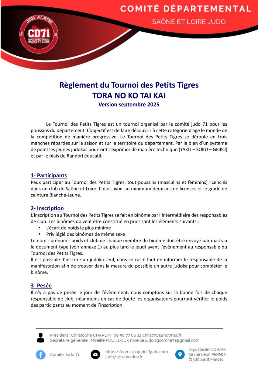 Tournoi des Petits Tigres 3ème session à SAINT MARCEL le samedi 09 mai 2026